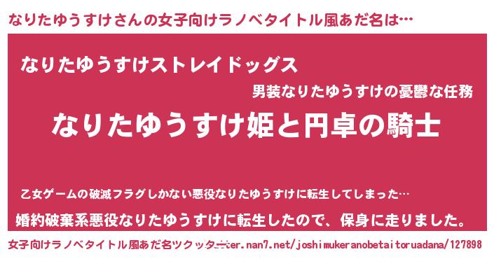 | ヘコむあだ名 | 『なりにゅー』『なりたゆうすけ(爆)』 |