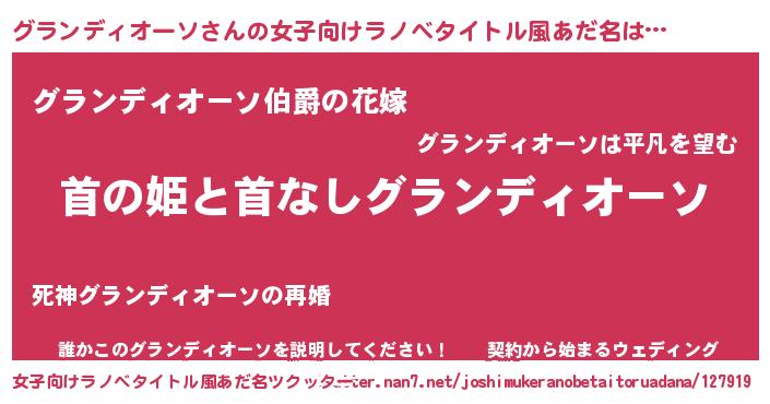 | 男性向けラノベタイトル風あだ名 | 『はたらくグランディオーソさま!』 |
