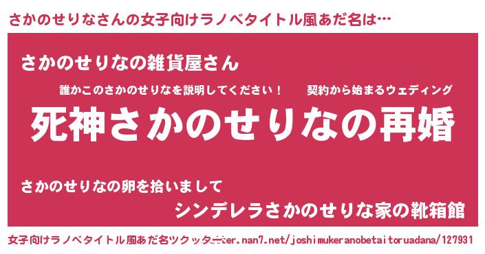 | 胡散臭い通販商品みたいなあだ名 | 『モンドセレクションを受賞した隕石のかけら…その名も「さかのせりな」』 |
