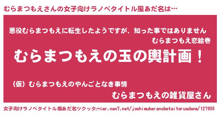 | 肩書あだ名 | 『むらまつもえ大将』『むらまつもえ教官』 |