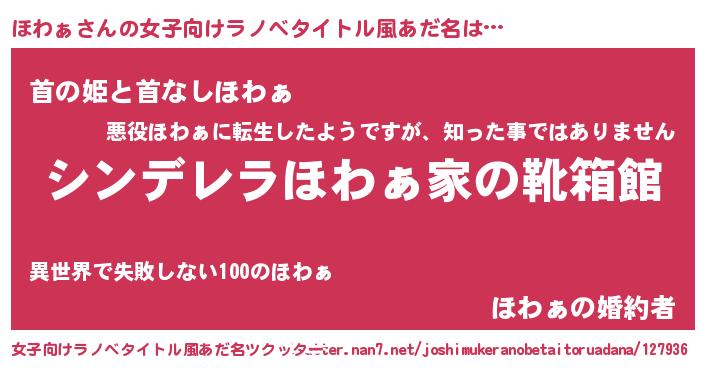 | 男性向けラノベタイトル風あだ名 | 『緋弾のホワァ』『はたらくほわぁさま!』 |