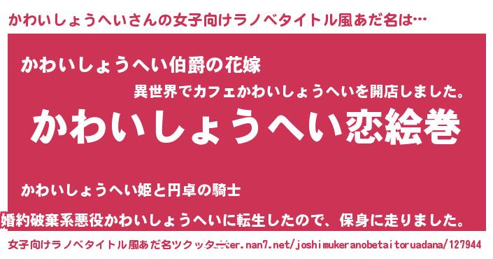 | 男性向けラノベタイトル風あだ名 | 『ノーゲーム・ノーカワイショウヘイ』 |