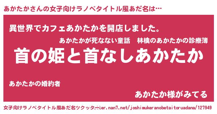 | 胡散臭い通販商品みたいなあだ名 | 『絶対に幸福をもたらす健康食品…その名も「あかたか」』 |