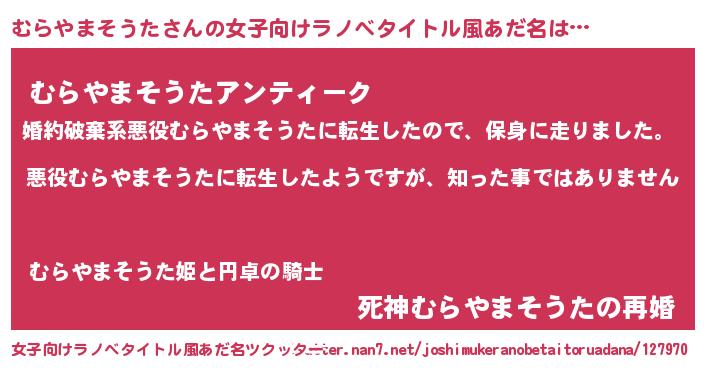 | 意味不明あだ名 | 『住所不定無職むらやまそうた(81歳)』 |