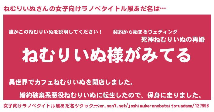 | ヘコむあだ名 | 『ねむっちょ』『ねむにー』 |