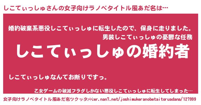 | ファンタジー風あだ名 | 『エターナルシコティッシュー』 |