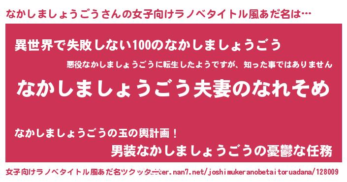 | 胡散臭い通販商品みたいなあだ名 | 『100人中100人が認めたイリジウム磁石…その名も「なかしましょうごう」』 |
