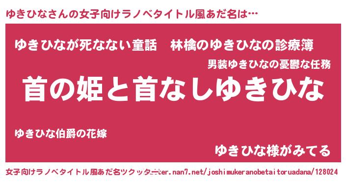 | 男性向けラノベタイトル風あだ名 | 『はたらくゆきひなさま!』 |