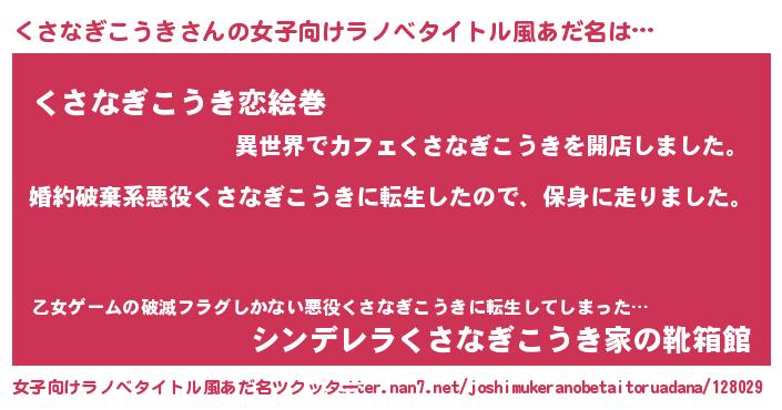 | ヘコむあだ名 | 『くさなぎこうき(笑)』『牛乳』 |