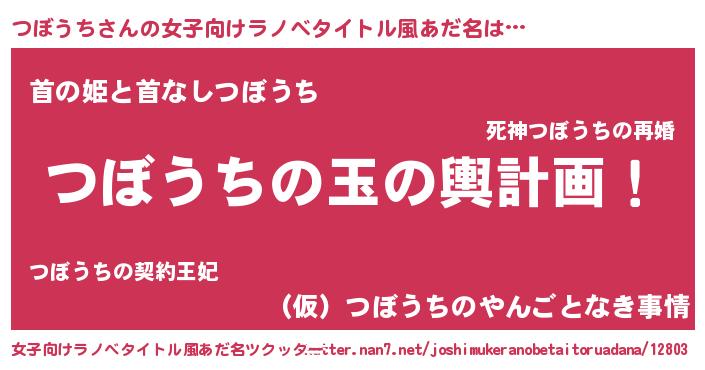 | ヘコむあだ名 | 『つぼにー』『つぼうち(苦笑)』 |