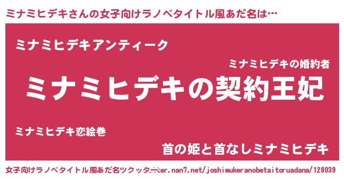 | 男性向けラノベタイトル風あだ名 | 『誰もが恐れるあのミナミヒデキが、ぼくの専属メイドになるようです。』 |