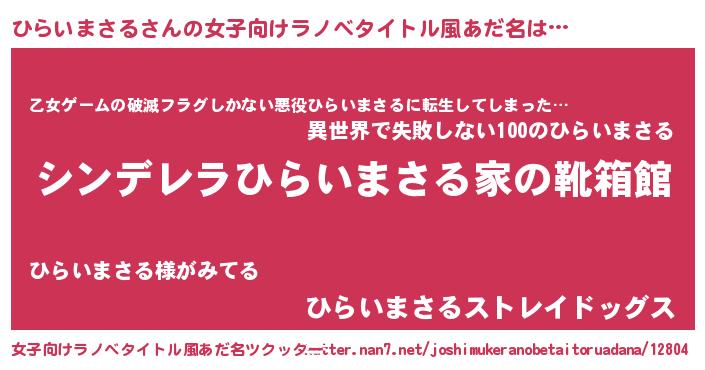 | 意味不明あだ名 | 『住所不定無職ひらいまさる(1歳)』 |