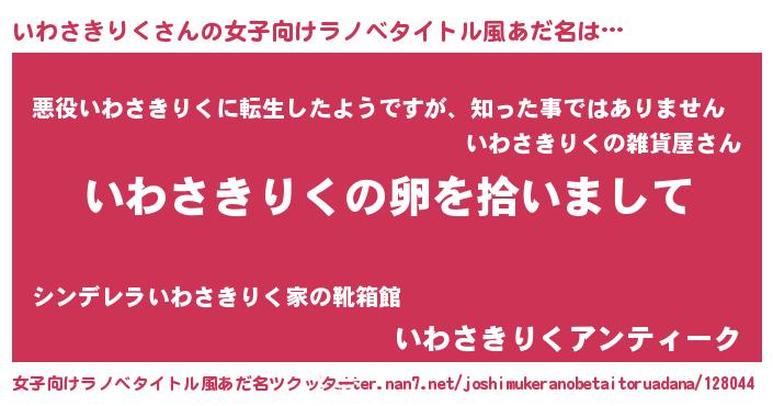 | 男性向けラノベタイトル風あだ名 | 『ダンジョンにいわさきりくを求めるのは間違っているだろうか』 |