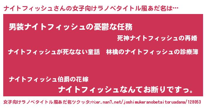 | 意味不明あだ名 | 『住所不定無職ナイトフィッシュ(3歳)』 |