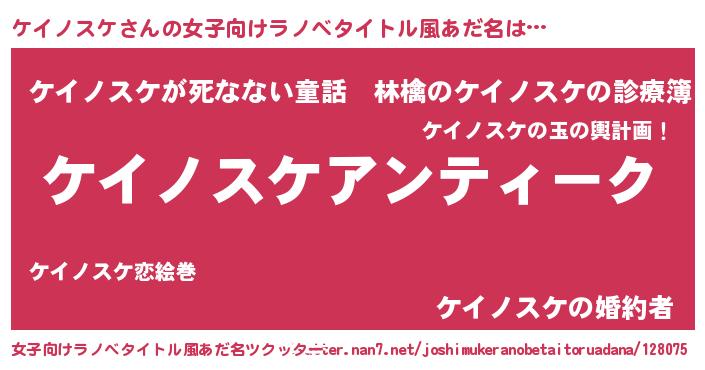 | 意味不明あだ名 | 『自称ケイノスケ』『ニラ科ケイノスケ属』 |