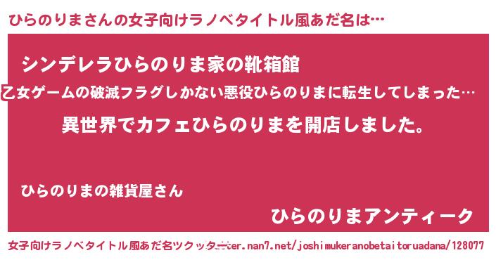 | ヘコむあだ名 | 『ひらのりま(遠い目)』『なまこ酢』 |