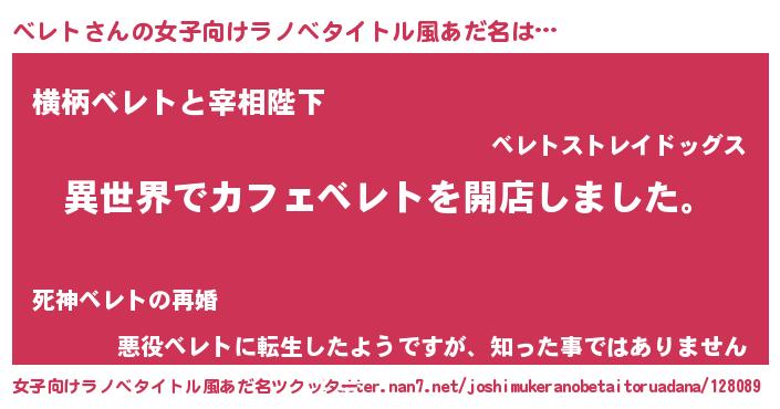 | ファンタジー風あだ名 | 『ベレディッシュ』『ヴァルベレーナ』 |