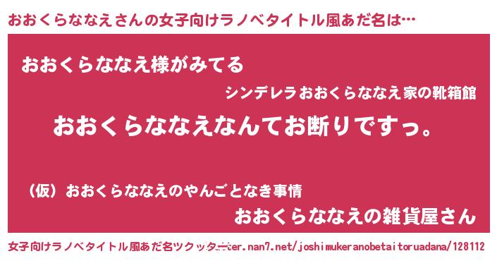 | 意味不明あだ名 | 『自称おおくらななえ』 |