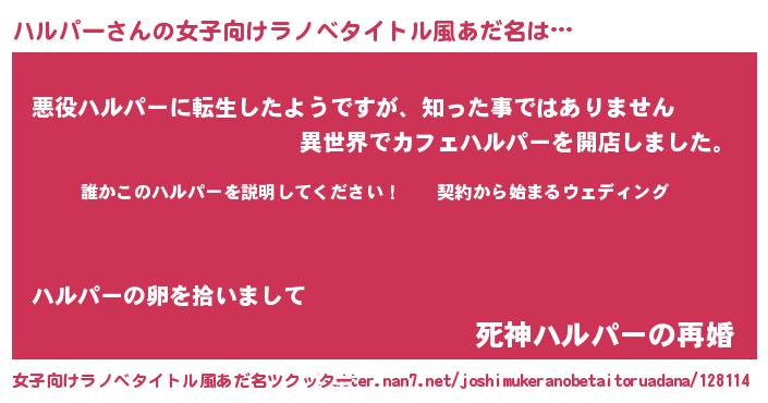 | 男性向けラノベタイトル風あだ名 | 『ハルパーアートオンライン』 |