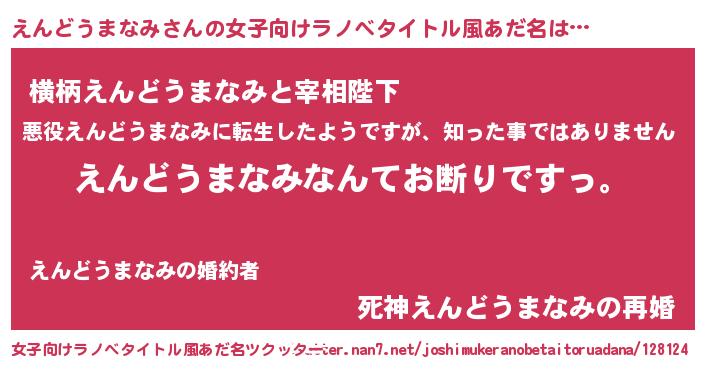 | 意味不明あだ名 | 『自称えんどうまなみ』 |