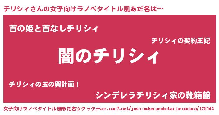 | 男性向けラノベタイトル風あだ名 | 『Re:チリシィから始める異世界生活』 |
