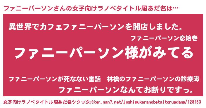| 男性向けラノベタイトル風あだ名 | 『ファニーパーソンの嫁は女の子じゃないと思った?』 |