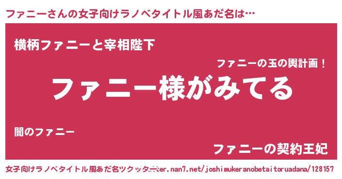 | 男性向けラノベタイトル風あだ名 | 『ファニーの嫁は女の子じゃないと思った?』 |