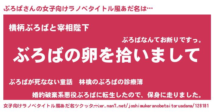 | 男性向けラノベタイトル風あだ名 | 『ダンジョンにぶろばを求めるのは間違っているだろうか』 |