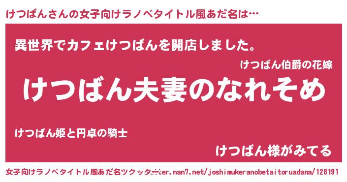 | 男性向けラノベタイトル風あだ名 | 『おまえをオタクにしてやるから、俺をけつばんにしてくれ! 』 |