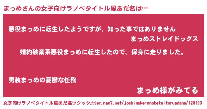 | 意味不明あだ名 | 『めかぶ科まっめ属』『自称まっめ』 |