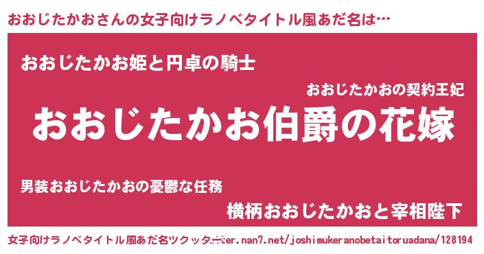 | ファンタジー風あだ名 | 『エターナルオオジタカオー』 |