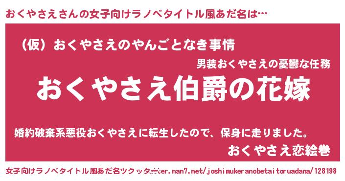 | 意味不明あだ名 | 『おくやさえフォーエバー』 |