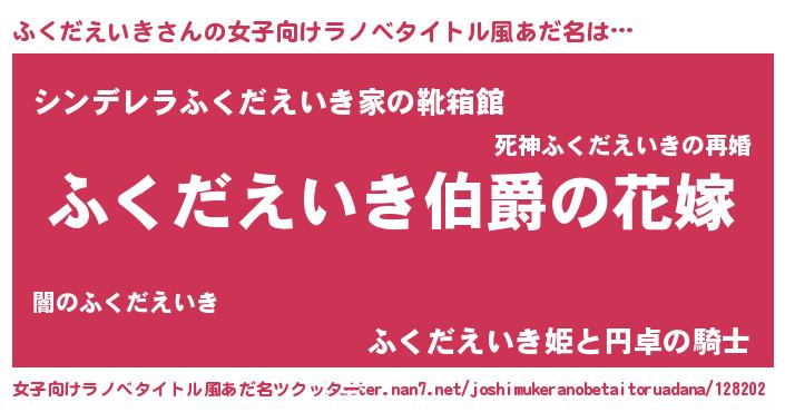 | 男性向けラノベタイトル風あだ名 | 『やはりふくだえいきの青春ラブコメはまちがっている 』 |