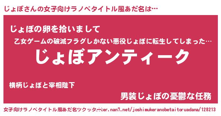 | 男性向けラノベタイトル風あだ名 | 『魔法科高校のじょぼ』 |