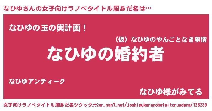 | 男性向けラノベタイトル風あだ名 | 『うちの娘の為ならば、俺はもしかしたらなひゆも倒せるかもしれない。』 |