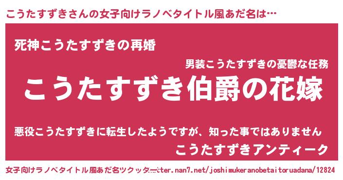 | 男性向けラノベタイトル風あだ名 | 『やはりこうたすずきの青春ラブコメはまちがっている 』 |