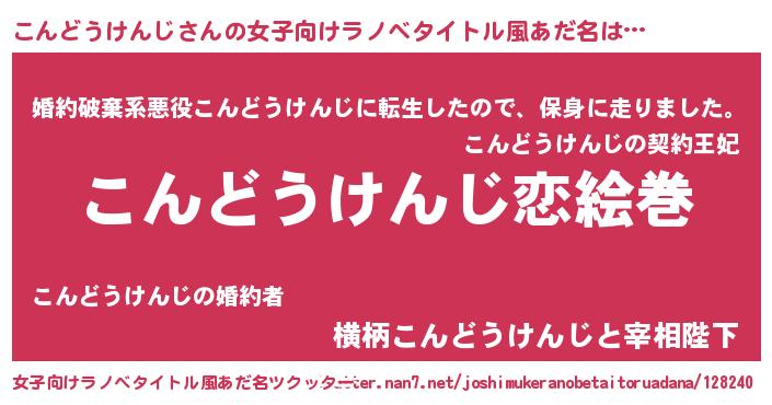 | 男性向けラノベタイトル風あだ名 | 『ノーゲーム・ノーコンドウケンジ』 |