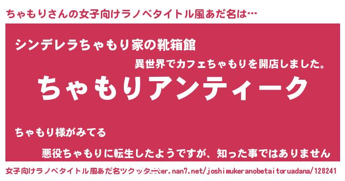 | 男性向けラノベタイトル風あだ名 | 『魔法科高校のちゃもり』 |