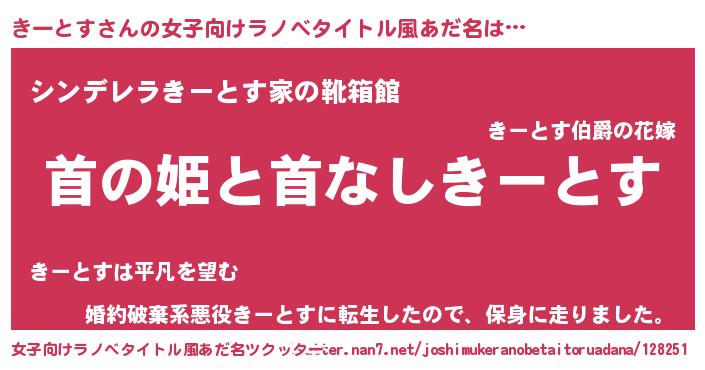 | 男性向けラノベタイトル風あだ名 | 『はたらくきーとすさま!』 |