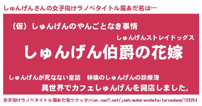 | ファンタジー風あだ名 | 『エターナルシュンゲンー』『シュフェル』 |