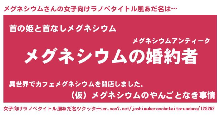 | ファンタジー風あだ名 | 『エターナルメグネシウムー』 |