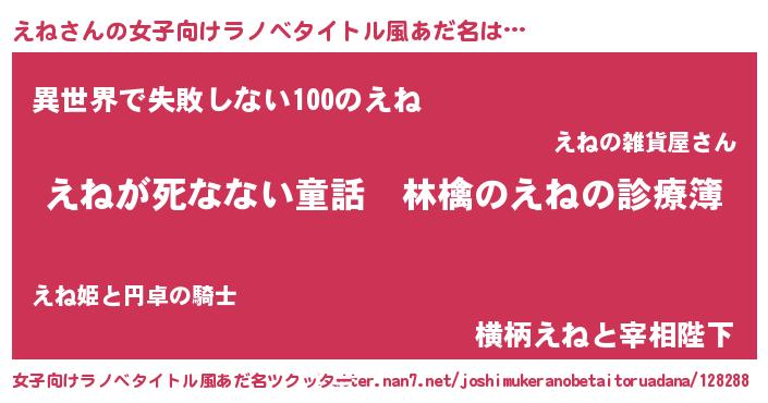 | 意味不明あだ名 | 『住所不定無職えね(6歳)』『永久保存えね』 |