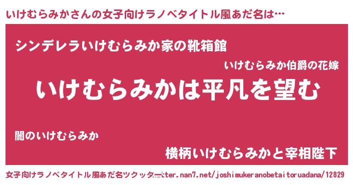 | 男性向けラノベタイトル風あだ名 | 『ダンジョンにいけむらみかを求めるのは間違っているだろうか』 |