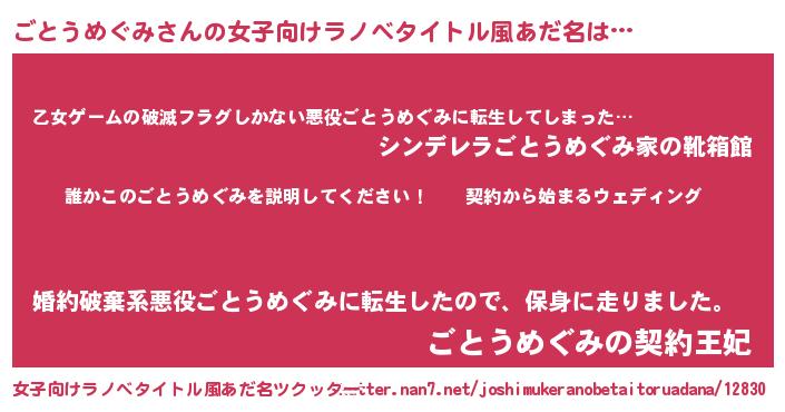 | 男性向けラノベタイトル風あだ名 | 『ゴトウメグミアートオンライン』 |