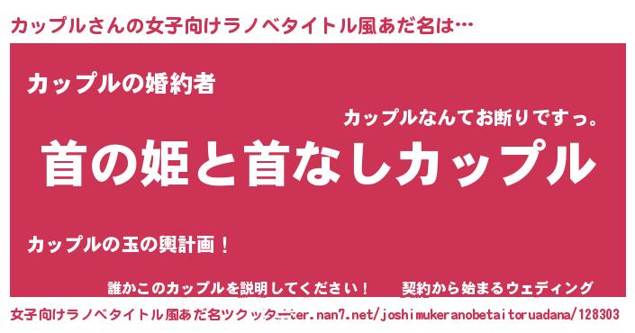 | 男性向けラノベタイトル風あだ名 | 『はたらくカップルさま!』 |