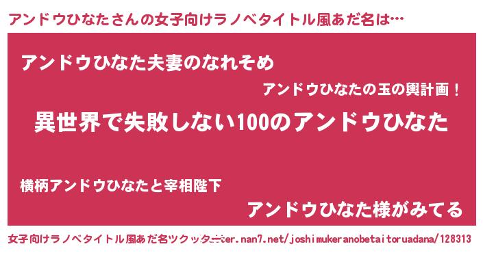 | 胡散臭い通販商品みたいなあだ名 | 『絶対に幸福をもたらす健康食品…その名も「アンドウひなた」』 |