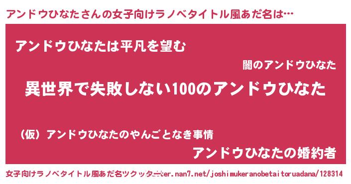 | 男性向けラノベタイトル風あだ名 | 『アンドウひなたという概念が存在しない退屈な世界 』 |