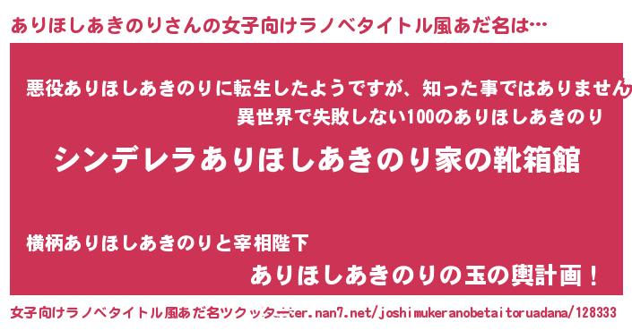 | 男性向けラノベタイトル風あだ名 | 『冴えないありほしあきのりの育てかた』 |