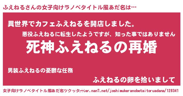 | ヒーロー風カッコイイあだ名 | 『慈愛の使者ふえねる』『ネオフエネル』 |