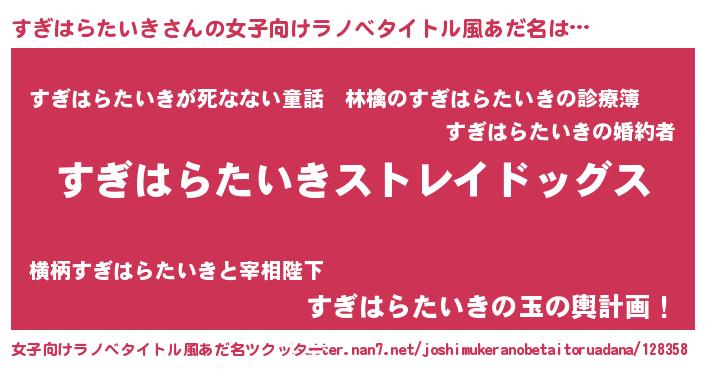 | 男性向けラノベタイトル風あだ名 | 『Re:すぎはらたいきから始める異世界生活』 |